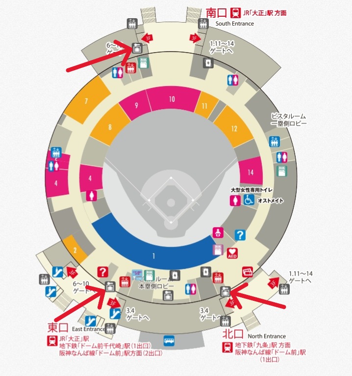 最寄り駅のコインロッカーは阪神のドーム前駅以外はあまり大規模ではありませんので、利用するなら早めにおさえましょう。