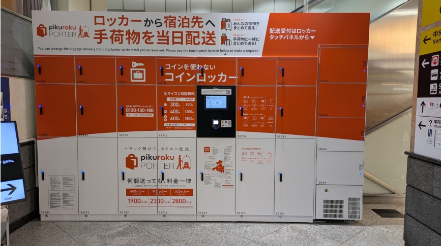 中央改札の中出口を出てすぐ左に見えているオレンジ色のコインロッカーはアプリを使えば最大48時間前から予約が可能です。