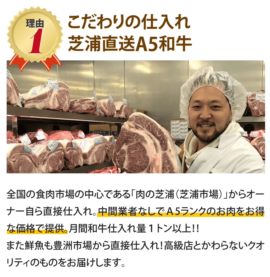 シンラガーデンは「芝浦直送のA5和牛」の「美味しい部位」だけを「専用冷蔵庫で寝かせてさらに熟成」させたお肉を提供しています。