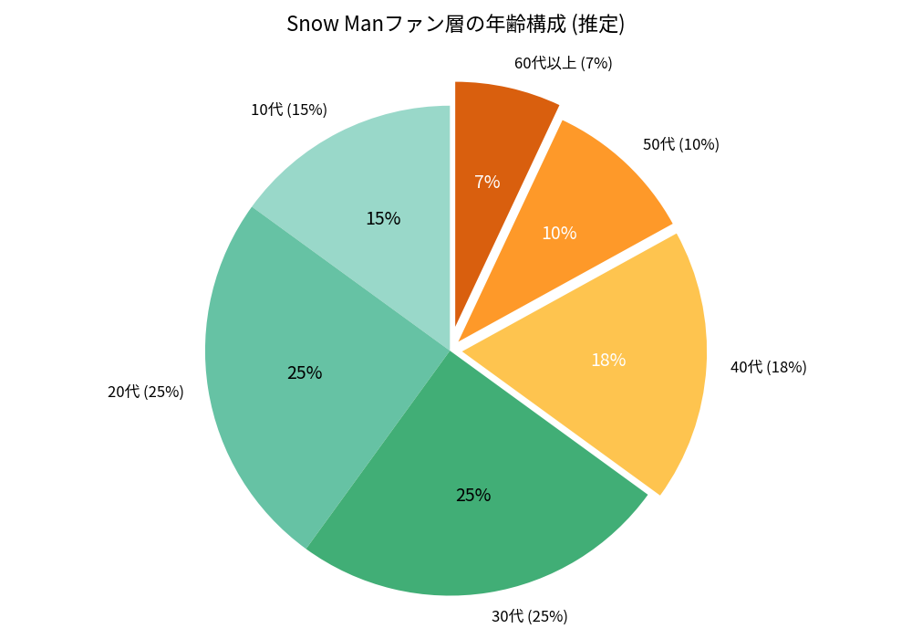 Snow Manファンは若年層だけでなく、人生経験を重ねた世代がしっかり支えているグループと言えますね。