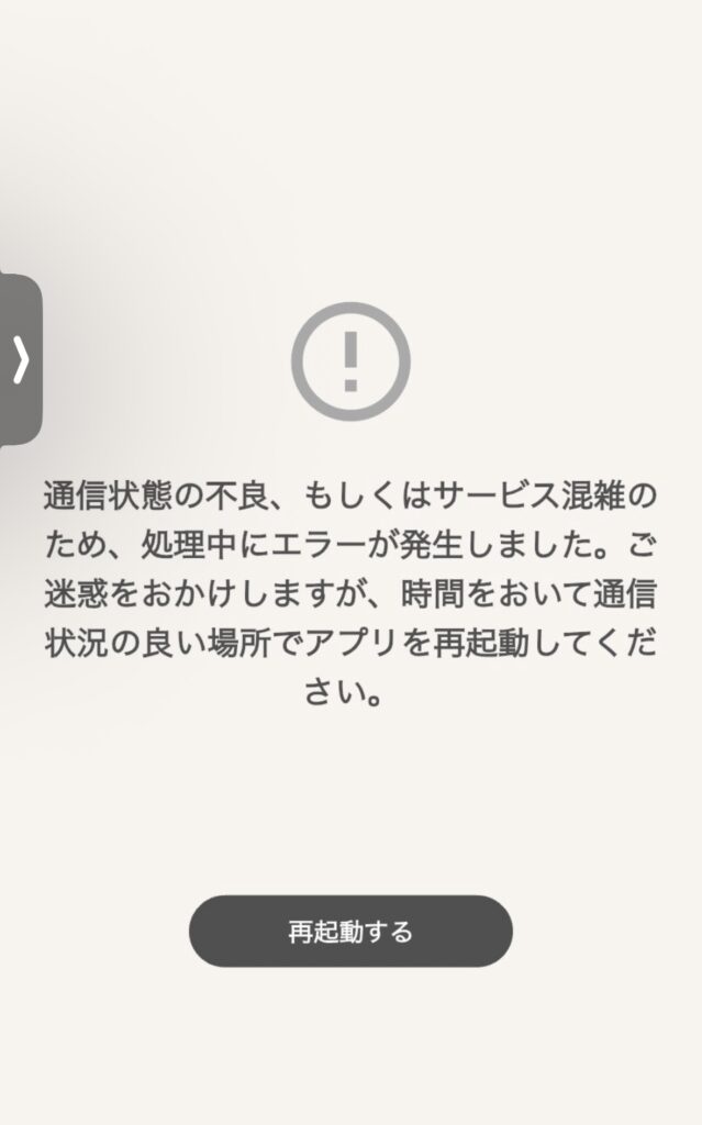 アプリを完全に閉じ(バックグラウンドも終了)、再起動します。